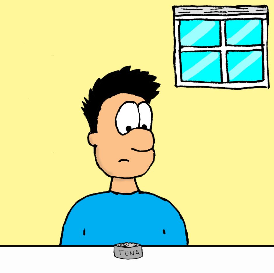 This is an older comic of mine I’ve redone. After Minnie went nuts in real life recently over a can of tuna, I plan on creating a tuna chronicles series of increasing insanity. This is part 1.
